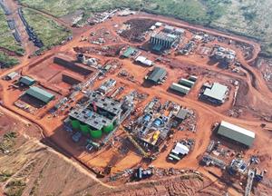 Figure 1: Aerial view of the Kiniéro site showing construction progress and ore stockpile on the ROM Pad